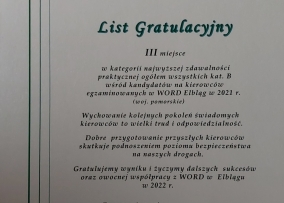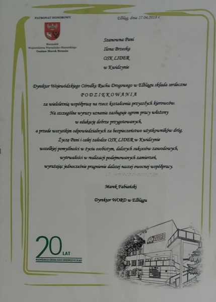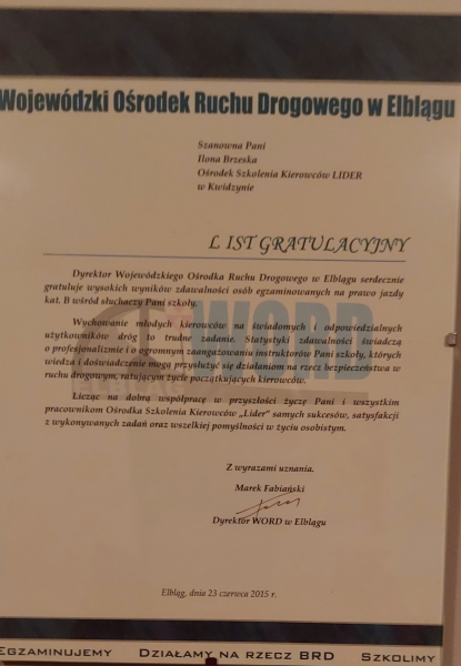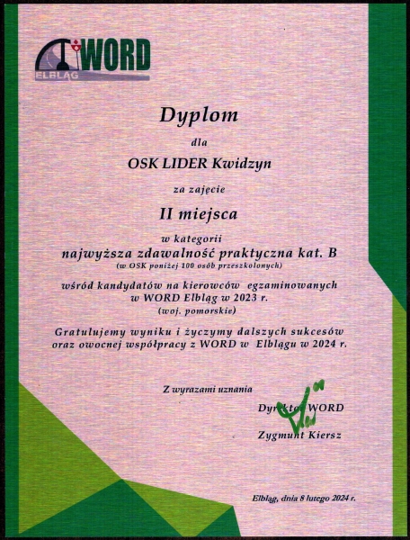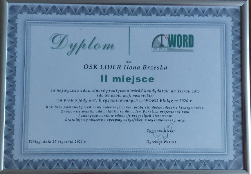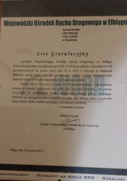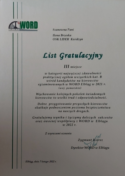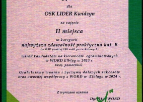 Po raz kolejny OSK LIDER w gronie najlepszych ośrodków szkolenia kierowców województwa pomorskiego.