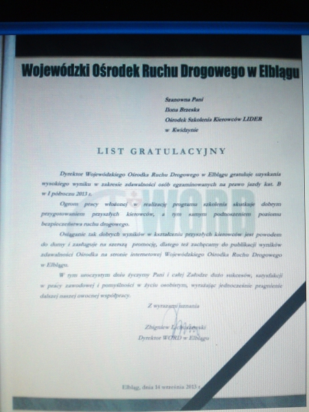 Kochani Kursanci to dzięki Wam mamy te wyróżnienia , to dzięki Wam istnieje Ośrodek Szkolenia Kierowców LIDER i to dzięki Wam mamy taką zdawalność ponieważ WSPÓLNIE na To.pracujemy.
