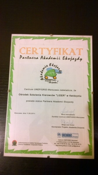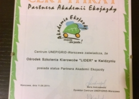 LIDER nauczy Was jeździć z rozwagą, pokorą, nie na pamięć.